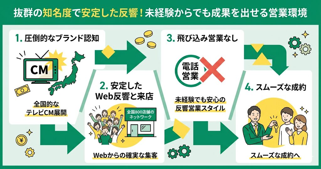 抜群の知名度がもたらす営業のしやすさと、丁寧な研修制度