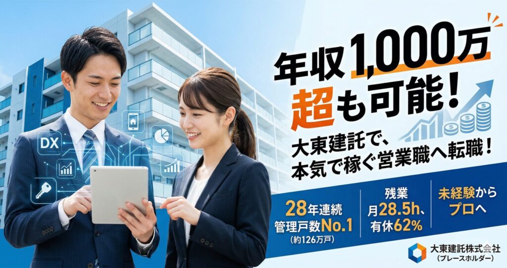 大東建託の不動産営業へ転職!年収や評判と圧倒的な安定基盤を解説