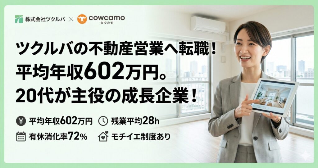不動産業界で営業職への転職をご検討されている社会人の皆様、本日は株式会社ツクルバ(TSUKURUBA Inc.)について詳しくご紹介させていただきますね。 「『場の発明』を... -