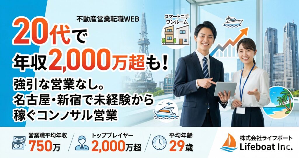 不動産業界で営業職への転職をご検討されている社会人の皆様、本日は株式会社ライフボート(Lifeboat Inc.)について詳しくご紹介させていただきますね。 「お客様の人... -