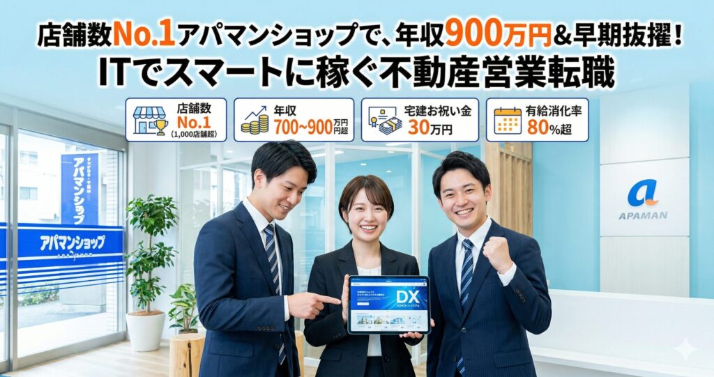 アパマンショップ(APAMAN)の営業へ転職!年収・評判と圧倒的なIT化を解説