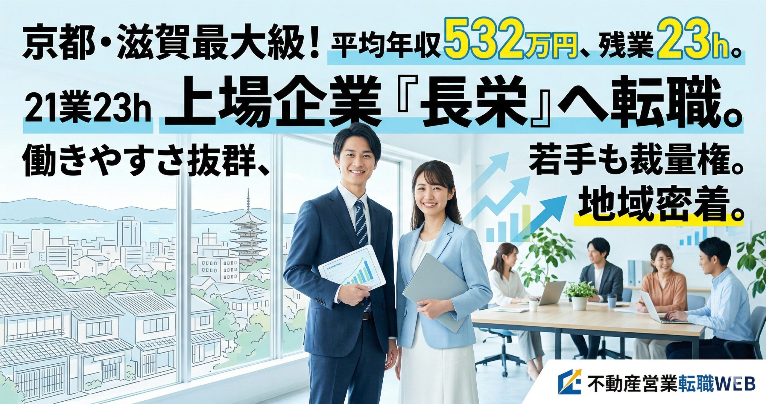 京都や滋賀のエリアで、不動産業界への転職を考えていらっしゃる皆さま。地域に密着しながら、安定した環境でキャリアを築いていきたいとお考えではないでしょうか。