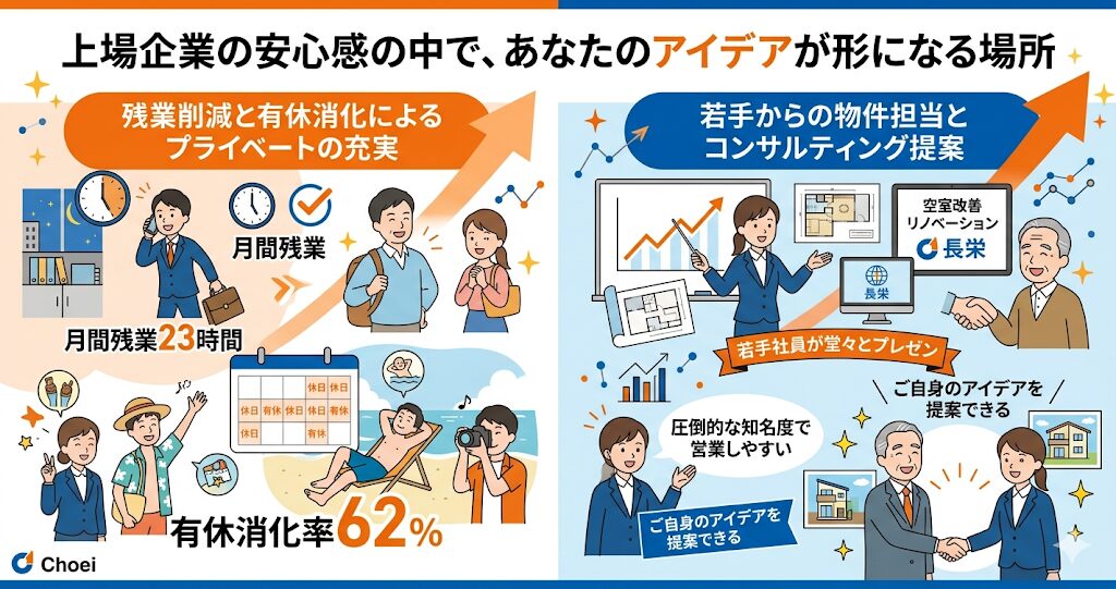 いかがでしたでしょうか。株式会社長栄は、京都・滋賀エリアでの圧倒的な管理実績と上場企業としての安定感を持ちながら、社員の努力をしっかりと評価し、働きやすい環境づくりにも全力で取り組んでいる、本当に魅力的な企業であることがお分かりいただけたかと思います。