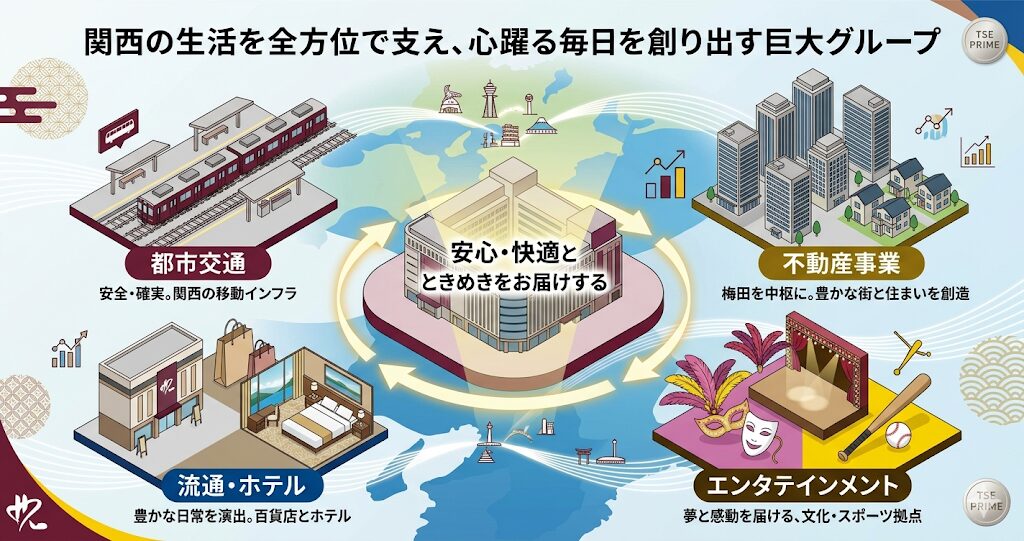 - 都市交通事業(阪急電鉄や阪神電気鉄道など、人々の毎日の足となるインフラ)