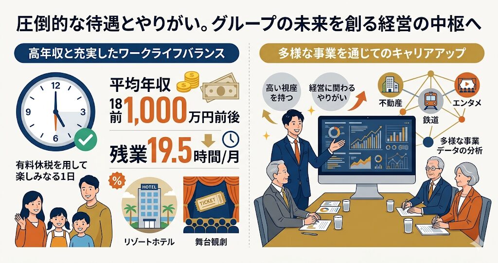 いかがでしたでしょうか。阪急阪神ホールディングスは、関西における圧倒的なブランド力と多角的な事業基盤を持ちながら、社員の皆様が最高のパフォーマンスを発揮できるよう、高い報酬と完璧なワークライフバランスを徹底して整えている、本当に素晴らしい企業であることがお分かりいただけたかと思います。