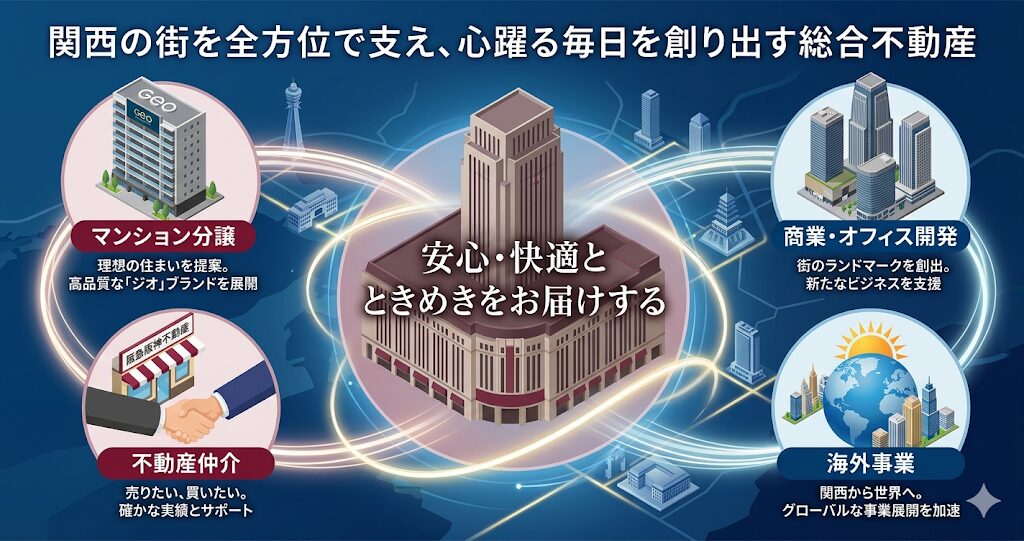大阪の心臓部である梅田周辺の広大なエリアに、オフィスビルや商業施設を多数保有・運営しており、街全体の価値を最大化するエリアマネジメントに非常に長けています。