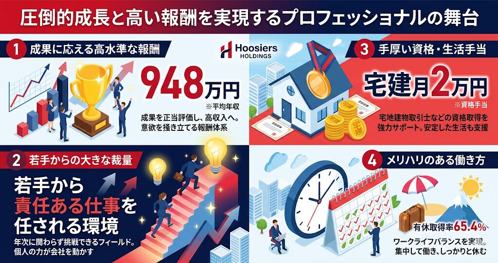 成果がダイレクトに反映される高年収や、充実した福利厚生について、具体的な数字も交えながらお伝えしますね。
