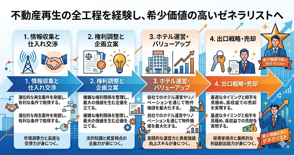 難易度の高いワケあり物件の再生や、ホテル運営という異なる業態を掛け合わせる経験は、不動産コンサルタントとしてのあなた自身の希少価値を、計り知れないほど高めてくれますよ。