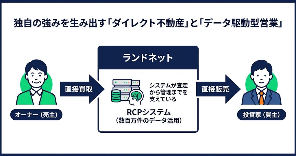 二つ目の大きな特徴が、「ダイレクト不動産」という直接取引の仕組みです。