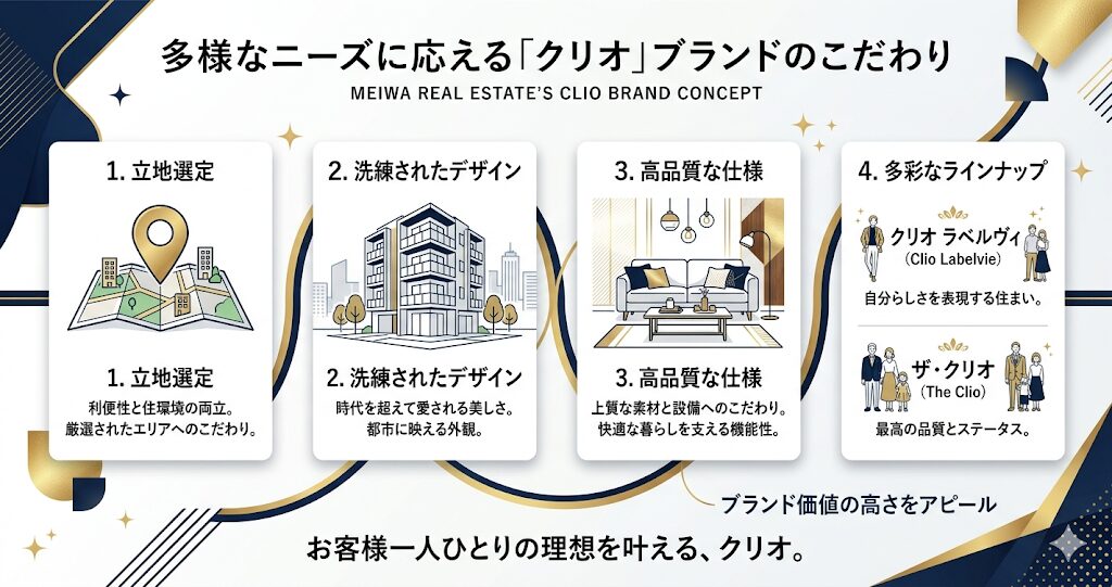 明和地所といえば、やはり分譲マンション「クリオ(CLIO)」シリーズを思い浮かべる方が多いと思います。