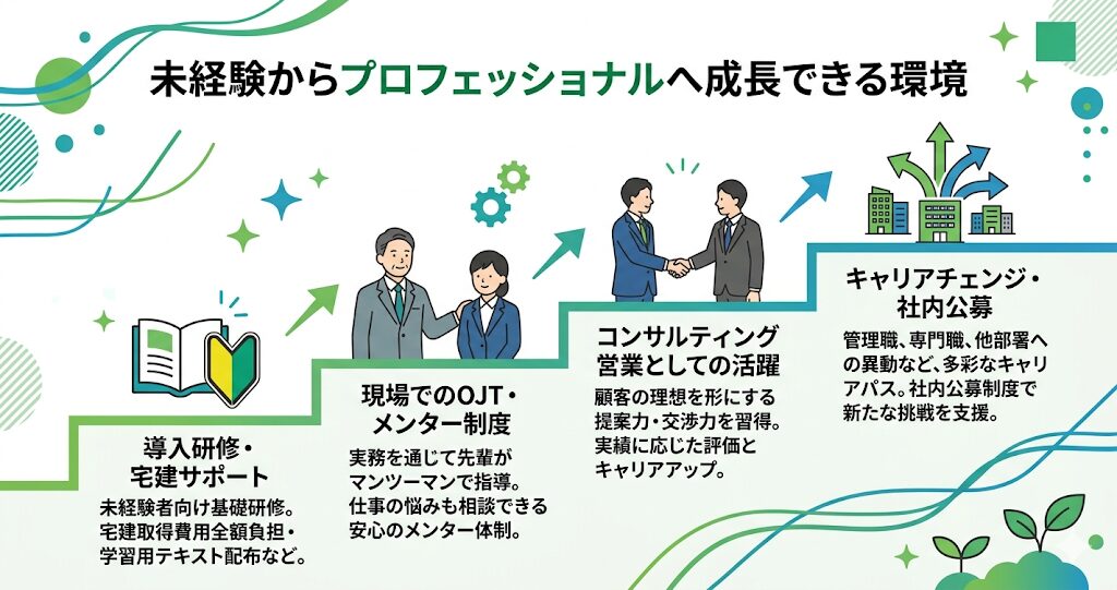 また、不動産という専門性の高い分野だからこそ、教育体制が非常に充実している点も心強いですね。