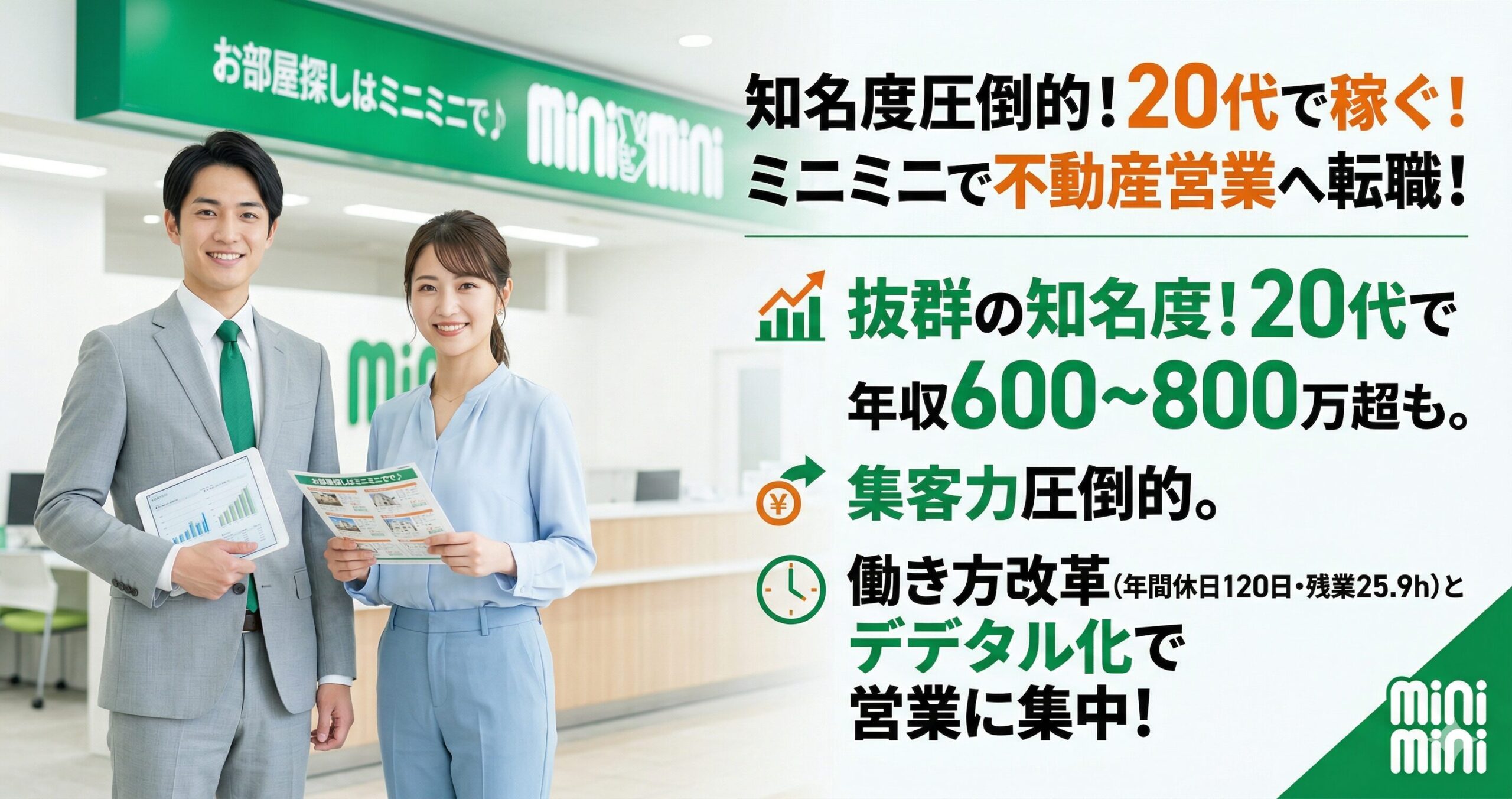 いかがでしたでしょうか。ミニミニは、業界トップクラスの知名度と独自のサービスでお客様に選ばれ続けながら、若手が主役となって圧倒的なスピードで成長し、高収入を掴み取れる、大変魅力的な企業であることがお分かりいただけたかと思います。