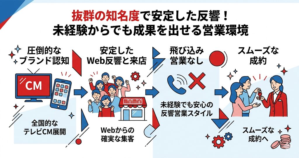 ミニミニの最大の強みであり、営業担当者にとって最も働きやすいポイントが、その「圧倒的な集客力」にあります。