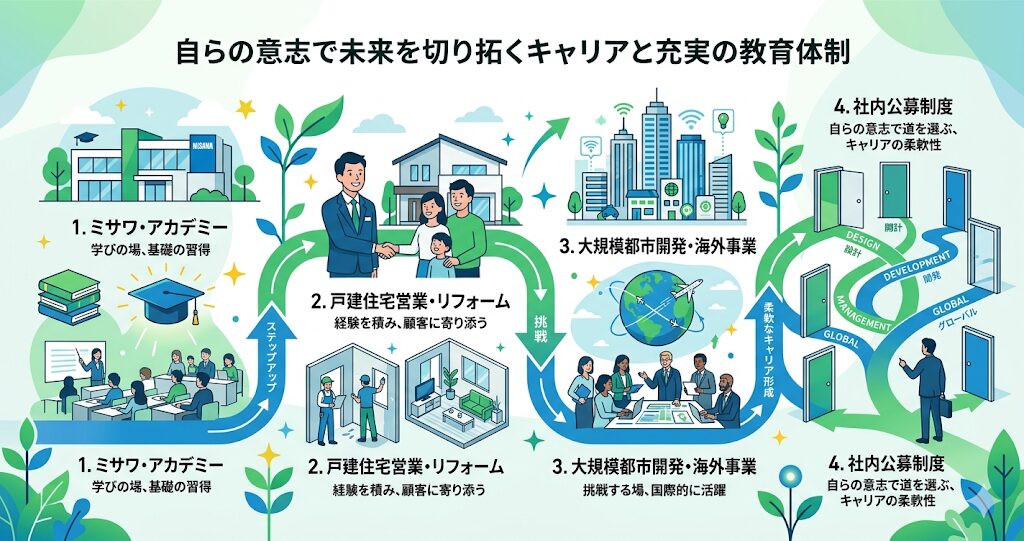 また、「ミサワ・アカデミー」という社内大学制度では、一級建築士などの難関資格取得に向けたサポートも非常に充実しており、働きながら専門性を極めていける最高の環境が整っています。