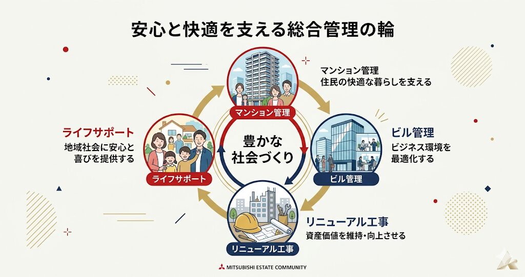 三菱地所コミュニティの事業の魅力は、その幅広さにあります。