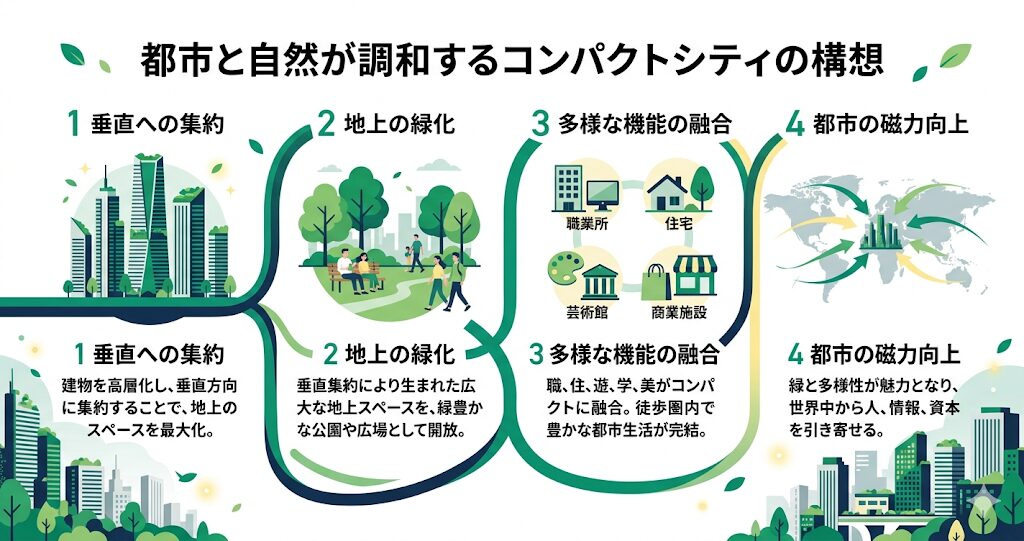 限られた都市の空間を空に向かって垂直に伸ばし、地上に豊かな緑や人々が憩う空間を創り出すという、素晴らしい発想なんですよね。