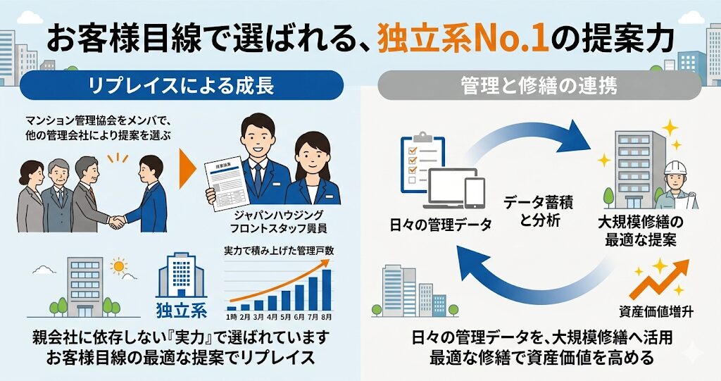 特徴1:独立系マンション管理戸数No.1の圧倒的シェアと提案力