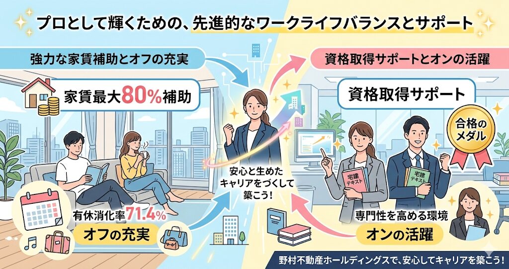 そして、多くの方が絶賛する「手厚い家賃補助」は、毎月の生活に大きなゆとりをもたらし、心身ともに充実した状態で仕事に向き合うための強力なサポートになっています。