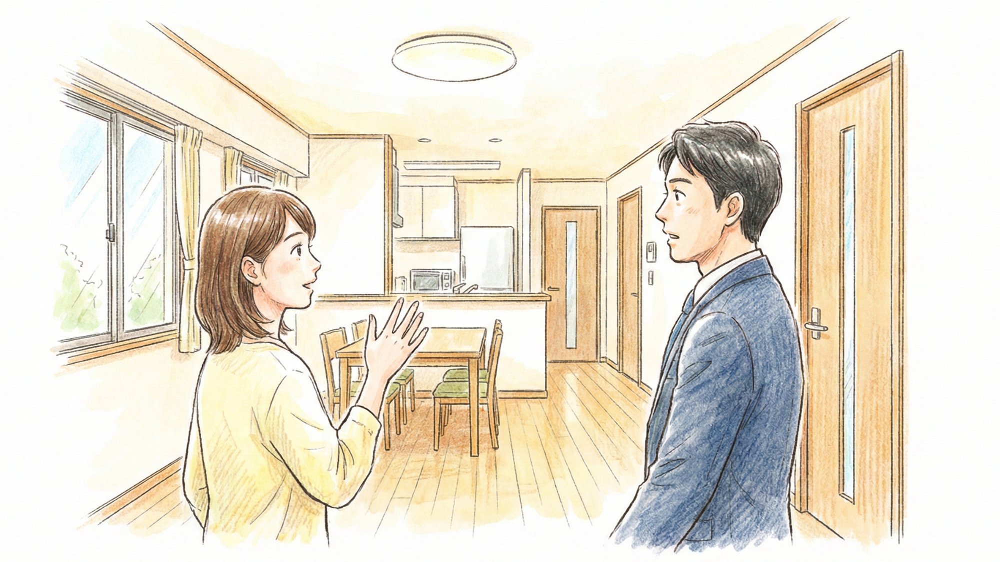 ヒアリングが終わったら、いよいよ社用車などでお客様を物件にご案内します。お客様と一緒に周辺環境(公園)を歩いている営業のように、ただお部屋の中をお見せするだけでなく、「近くにこんな素敵なカフェがありますよ」「スーパーが近くて毎日のお買い物が便利ですね」と、新しい街での暮らしのイメージを豊かに膨らませていただくことが大切です 。
