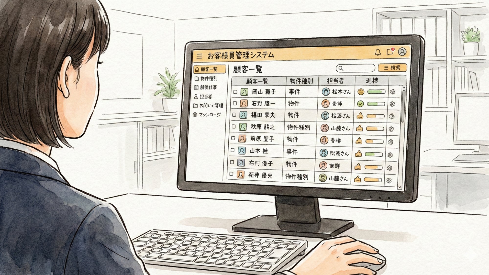 ご案内したお客様へのお礼のメールをお送りしたり、ご契約に向けて必要な書類の作成を進めたりと、正確性が求められる大切な事務作業が待っています。また、物件のオーナー様にご案内のご報告をしたり、インターネットに掲載している物件の写真を差し替えたりと、細かいお仕事もたくさんあるんですよ。