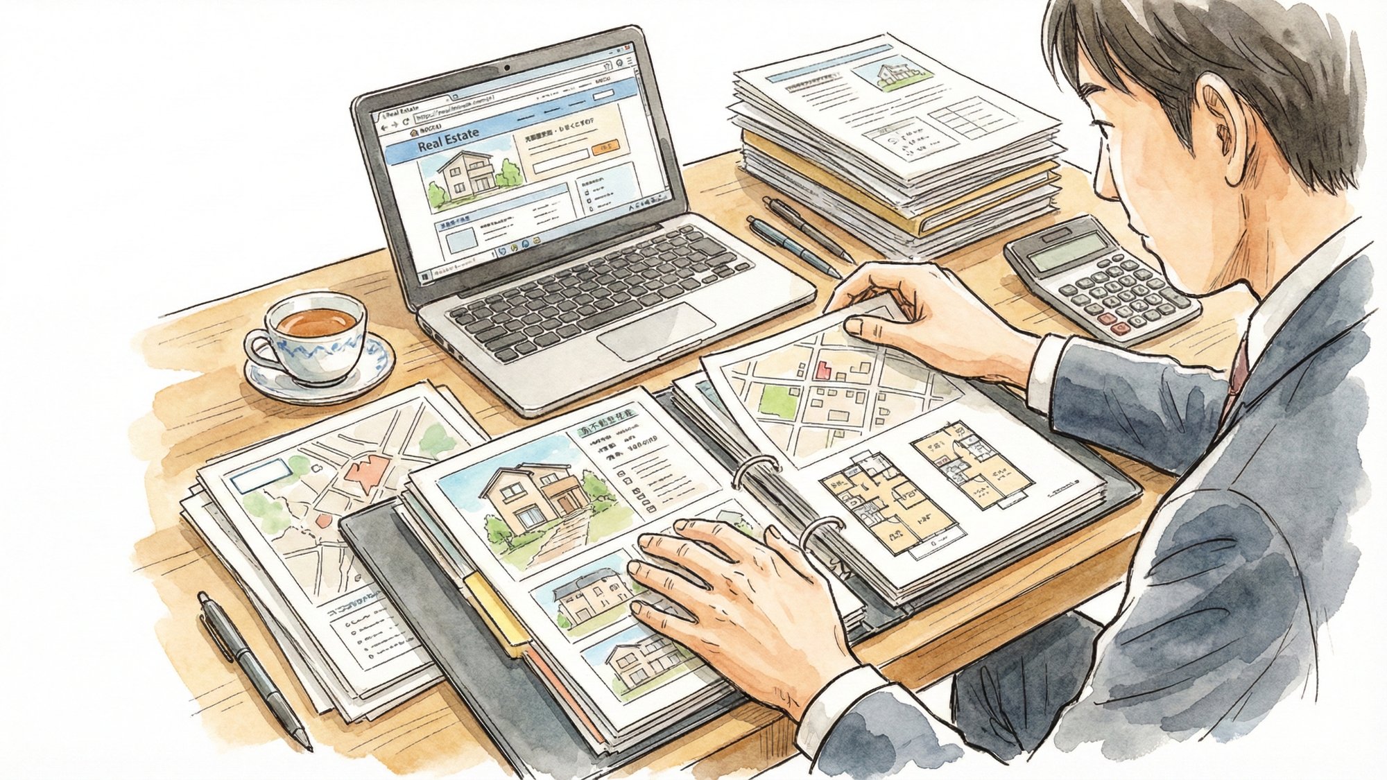外でのご案内や商談を終えて店舗に戻ってくるのは、夕方の16時から17時頃になることが多いです。ここからは、営業担当がデスクで物件資料を整理している様子に見られるように、デスクワークが中心の時間帯へと切り替わります 。