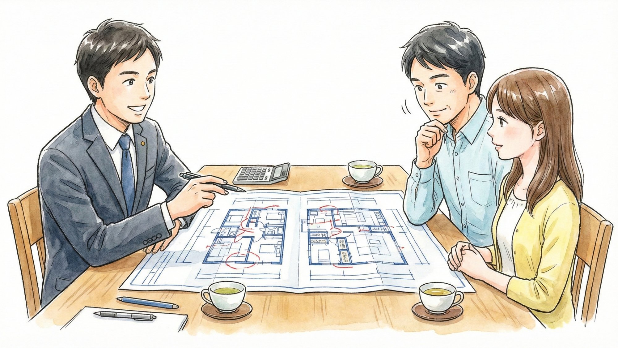 そのため、1日のスケジュールの中には、物件のご案内だけでなく、お客様に間取り図を指さしながら説明している様子のような、詳細なヒアリングや資金計画の打ち合わせの時間がたっぷりと組み込まれます 。住宅ローンの事前審査の書類作成や、役所に行って物件の法律的な調査を行うなど、商談以外の専門的な業務もたくさんあるんですよ。