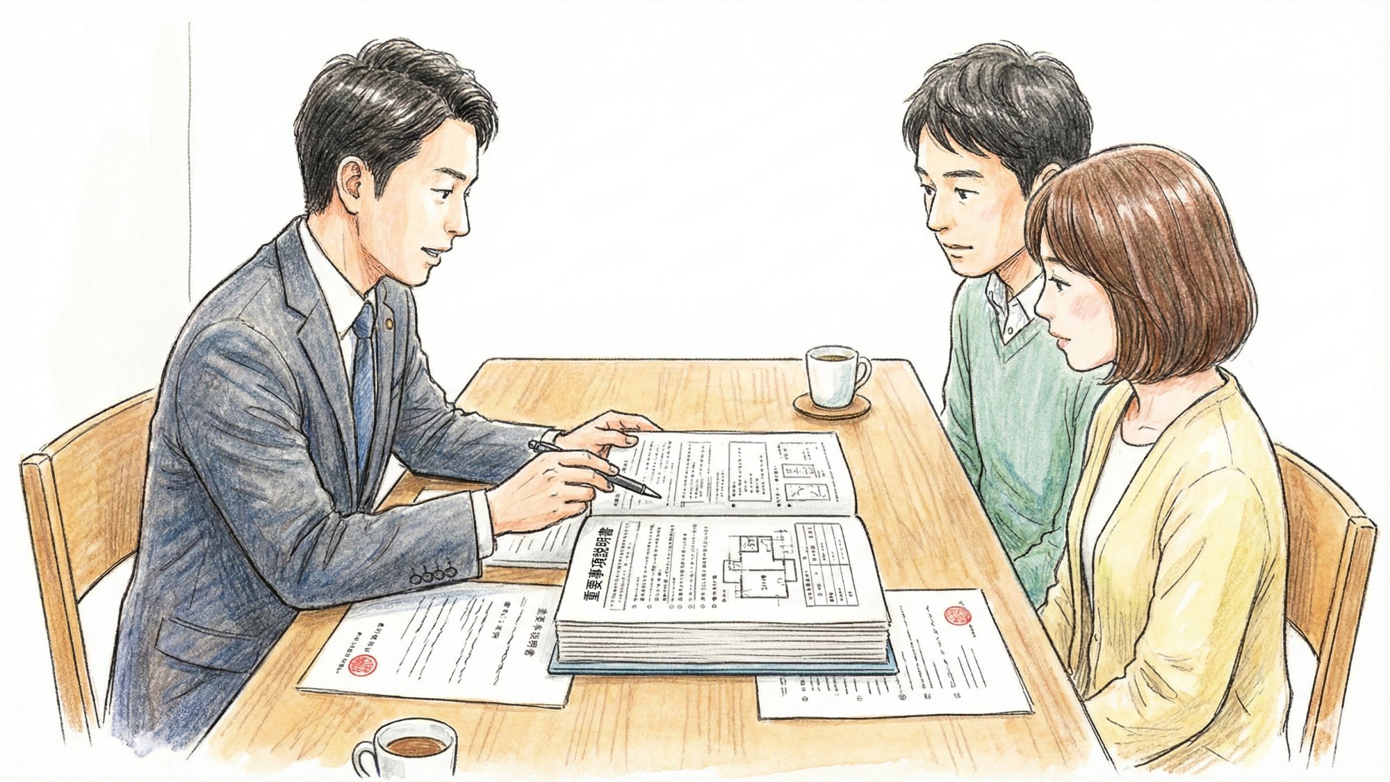 一つ目は「重要事項の説明」です。契約の前に、物件に関する大切なルールやリスクをお客様にわかりやすくご説明するお仕事です。二つ目は、その「重要事項説明書への記名(サイン)」です。そして三つ目が、「契約書への記名(サイン)」です。
