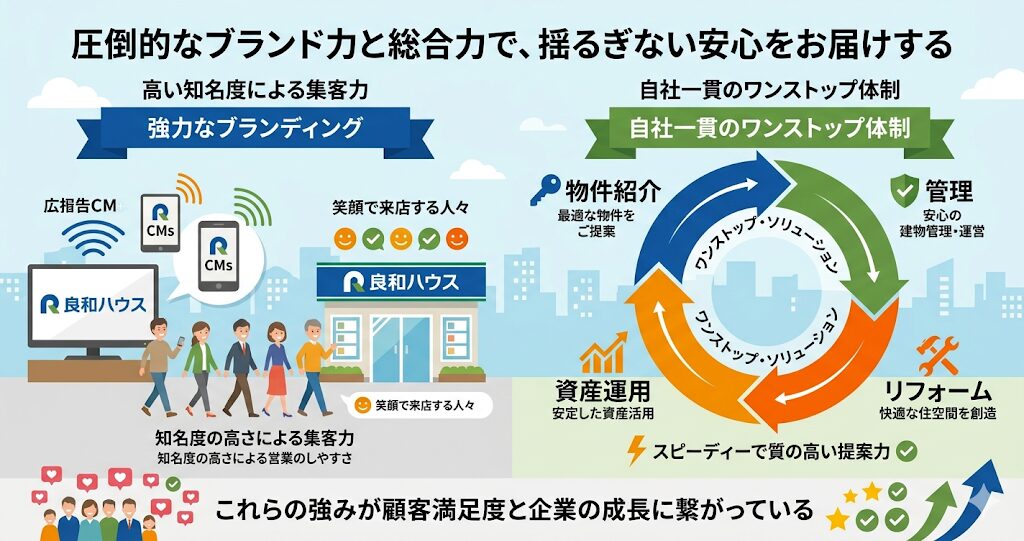 続いては、良和ハウスが他の不動産会社と比べてどのような独自性を持っているのか、その特徴を3つの視点から詳しく見ていきましょう。