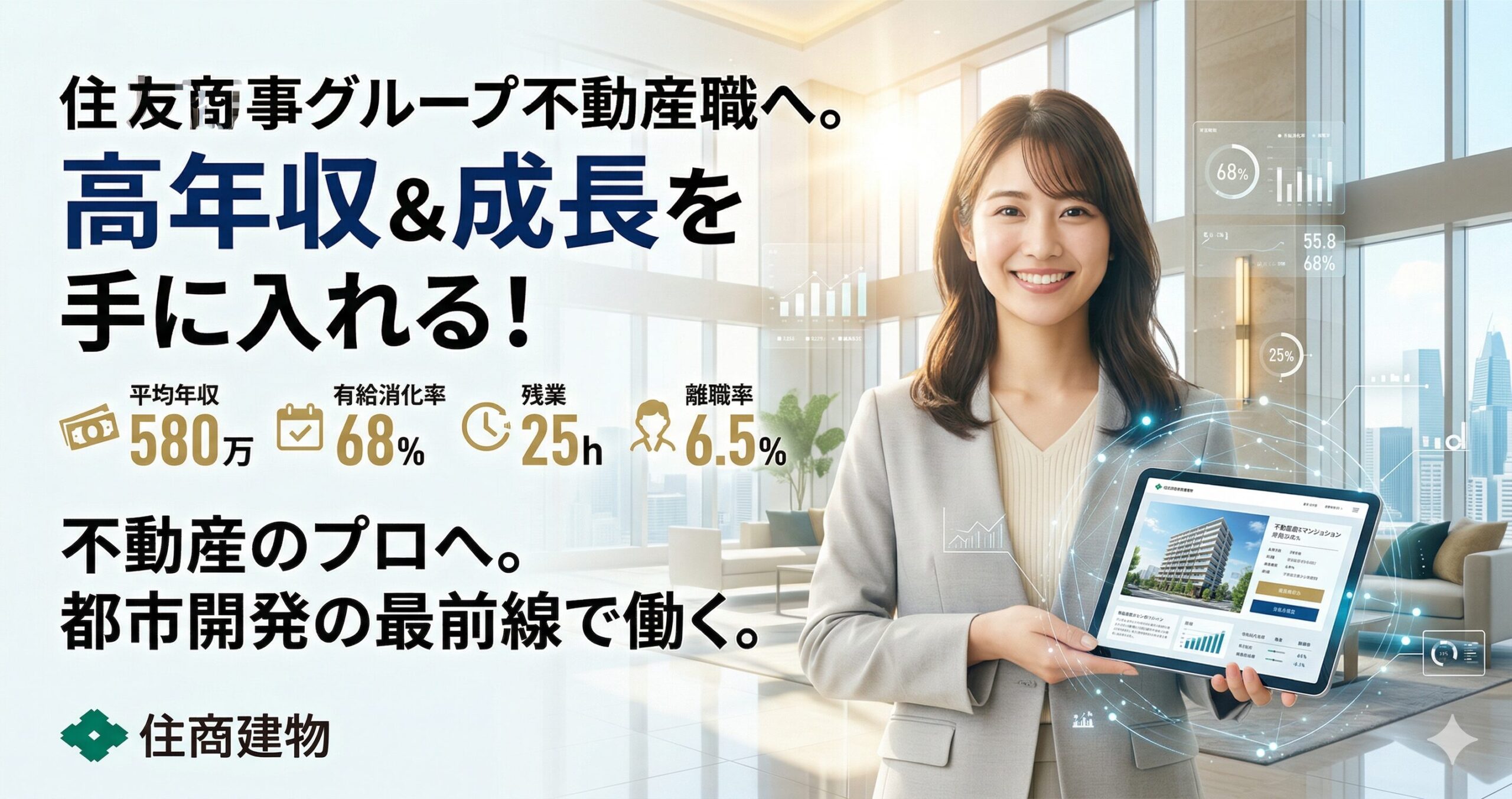 いかがでしたでしょうか。住商建物は、住友商事グループという圧倒的な安定基盤を持ちながら、社員の働きやすさとコンプライアンスを心から大切にし、ハイグレードな不動産のプロフェッショナルへと育ててくれる、大変魅力的な企業であることがお分かりいただけたかと思います。
