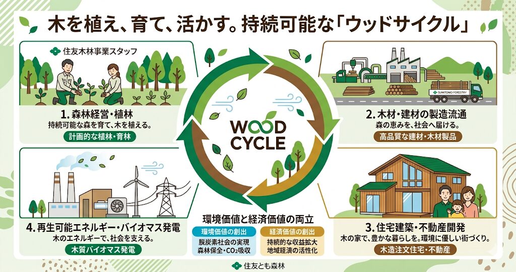 住友林業の会社の特徴:ウッドサイクルとグローバルな事業展開
