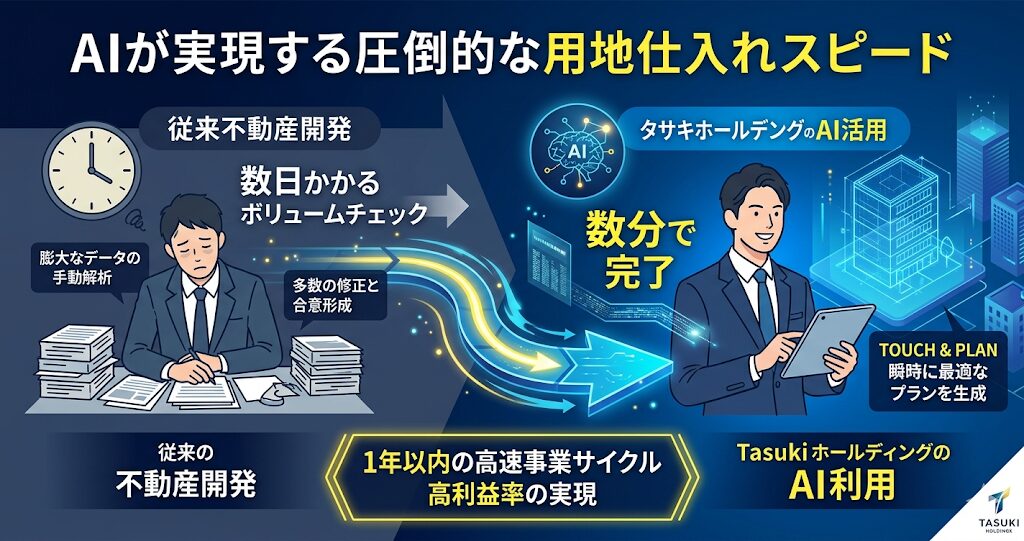 他社が何日もかけて検討している間に、いち早く正確な判断を下して土地を仕入れることができるんです。