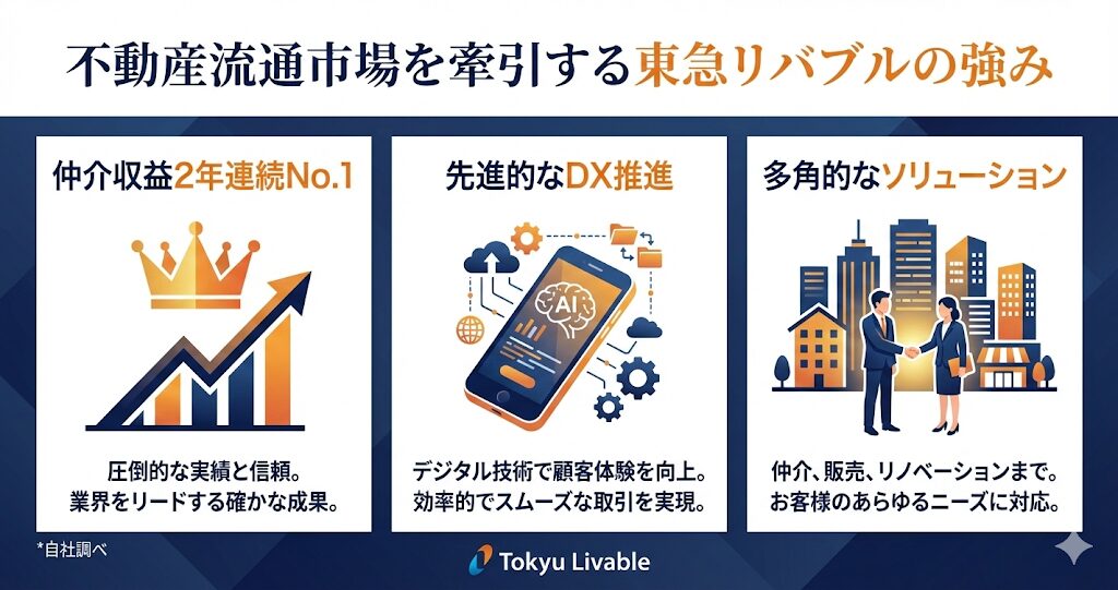 東急リバブルは、1972年の設立以来、日本の不動産流通市場を牽引し続けてきた、非常に歴史と実績のある企業です。